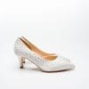 This model is the quintessence of delicacy. A delicate stiletto heel and a subtle D’orsay cutout emphasize the fashionable character of the shoe. The extremely delicate and subtle Sophia pump is a proposal for elegant brides who like timeless classics. The delicate satin is additionally decorated with SWAROVSKI crystal jets, giving a sparkling effect, which will work well in both classic, i.e. elegant wedding stylizations and will beautifully correspond with smooth or micro-glitter tulle skirts.