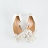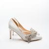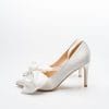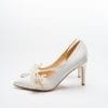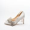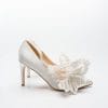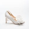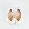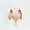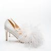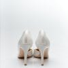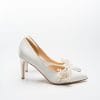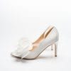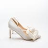 The Sophia model has a permanent place in our collection. This is a classic and timeless pump, which has a delicate cut-out on the inside, which gives it lightness and airiness. The satin upper enhances comfort and adds femininity. The pump is often chosen both in the summer and autumn seasons. The classic stiletto, slightly thicker at the base, makes us feel light and feminine. In the shade of noble broken white, the pump will work well with both a smooth wedding dress, but also an effective and decorated one, where you have to “mute” the accessories a bit and choose more delicate ones. The style with a delicate tip is a timeless cut that will not go out of fashion. Remember, you can always buy a selected brooch – clip for our smooth styles and change the look of your shoes.
