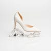 Model Sophia ma stałe miejsce w naszej kolekcji. To klasyczne i ponadczasowe czółenko, które posiada delikatne wycięcie od wewnętrznej strony co nadaje mu lekkości i zwiewności. Atłasowa cholewka wzmacnia komfort i dodaje kobiecości. Czółenko często jest wybierane zarówno w sezonach letnich jak i jesiennych. Klasyczna szpilka, nieco tęższa u nasady powoduje, że czujemy się lekko i kobieco. W odcieniu szlachetnej łamanej bieli, czółenko sprawdzi się zarówno do gładkiej ślubnej suknii, ale i efektownej i zdobionej, gdzie dodatki musisz nieco „wyciszyć” i dobrać delikatniejsze. Fason z delikatnym czubkiem to ponadczasowy krój, który nie wyjdzie z mody. Pamiętaj do naszych gładkich fasonów zawsze możesz dokupić wybraną broszkę – klips i zmienić wygląd swoich bucików.