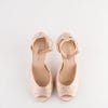 Uwielbiane przez panny młode i świadkowe sandały peep toe Alfreda. W tym sezonie są totalnie w trendach. Nawiązują delikatnie do stylu vintage, ich lekko zaokrąglony przód pięknie okala stopę i doda jej stabilności, małe wycięcie jedynie na dwa paluszki. Całość tak żeby nie była za masywna została oprószona dżetami Swarovski i stwarza wrażenie skrzącej tkaniny. Sprawdzą się do długiej sukni, I bogato zdobionej ale będą też pięknym biżuteryjnym detalem gładkiej stylizacji. Ten fason jest ponadczasowy i klasyczny. Nigdy nie wyjdzie z mody.