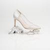 Luksusowe. Biżuteryjne. Kobiece. Niepowtarzalne. Takie są sandały Marion. Cholewka została ręcznie wyszyta z kryształków Swarovski i pereł w ich oryginalnym kształcie. Ten fason pięknie uzupełni szczególnie suknie z rozcięciem lub zdobione góry – gorsety kryształami lub perłami. Kolor pudrowej cielistości opalizuje i zlewa się z kolorem ciała podkreślając wyjątkowość i perłowość biżuteryjnych dodatków. Niewysoka szpilka pozwoli przetańczyć w nich całą noc. Taliowany pasek idealnie zbiera przód stopy – daje komfort i stabilizację. To wymarzony fason dla Pań o tęższych stopach. Niepowtarzalny i ręcznie wyszywany. Dzieło sztuki.